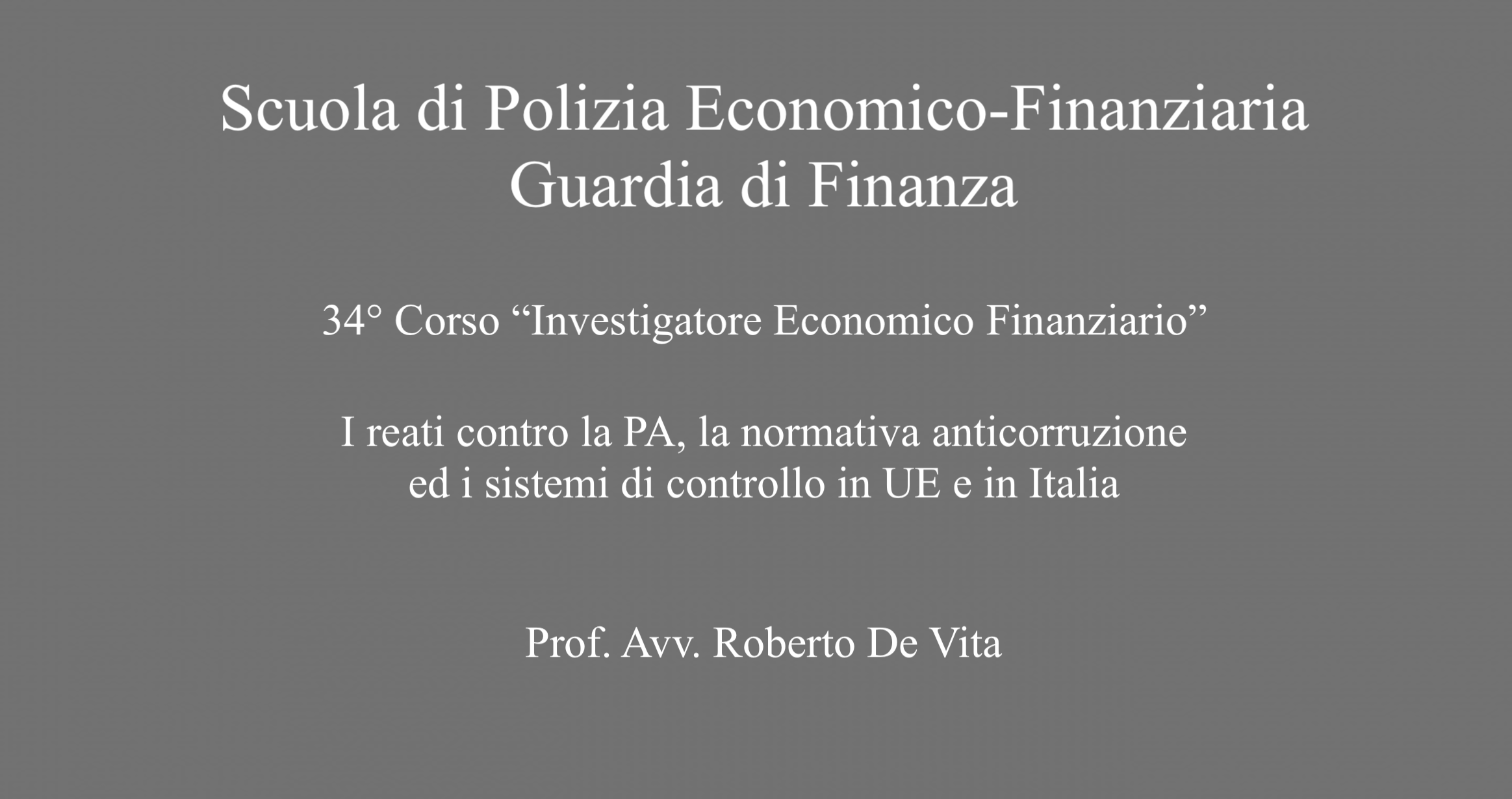 Guardia di Finanza Scuola di Polizia Economico Finanziaria. 34° Corso “Investigatore Economico Finanziario”