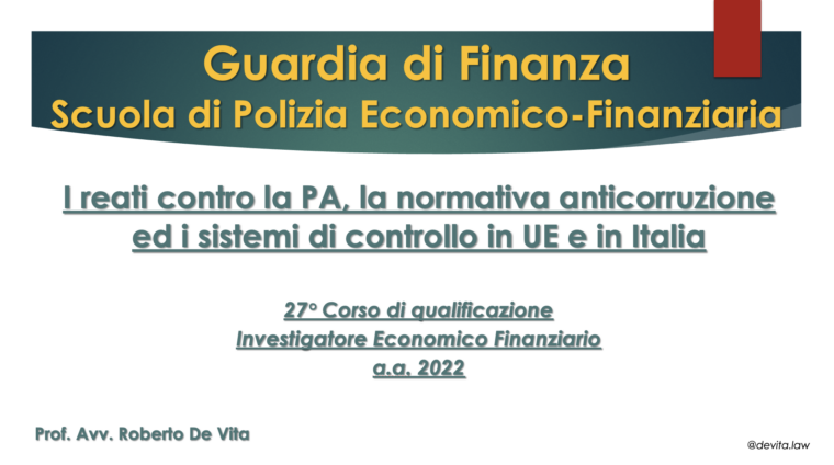 Iniziano oggi le lezioni dell’insegnamento del Prof. Avv. Roberto De Vita per il 27° Corso…